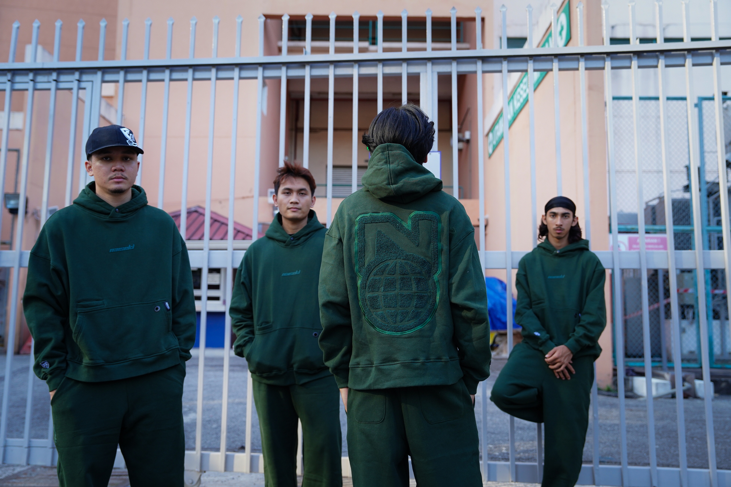 The Back Showcases A Standout Towel Embroidery Design, A Large "N" Above A Global Graphic.